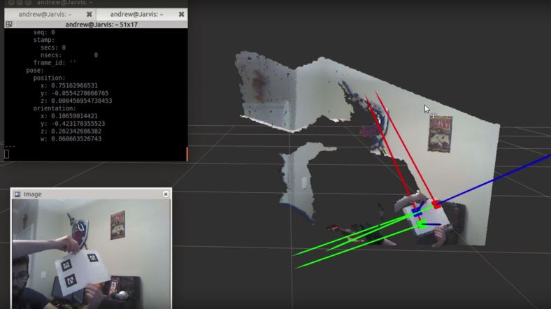 The [R|t] portion of the above equation is often called the joint rotation-translation matrix, which is also referred to as the “extrinsic” parameters of the model. We can think of the intrinsic calibration as the “internal parameters” to the camera and the “extrinsic parameters” as the “external” configuration of the camera. So this relates our camera back to a pose in space. You can find more information about rotation matrices and translation matrices in my kinematics tutorial if you want a refresher. Fundamentally, the rotation-translation matrix correlates a point (x, y, z) to a coordinate with respect to the camera. You can find a great write up on the OpenCV website via this link for more information.